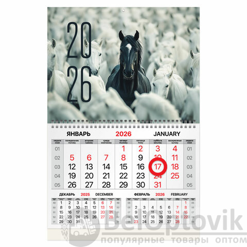 Календарь квартальный 2026 г., 1 блок, 1 гребень, магнитный курсор, мелованная бумага, BRAUBERG, "Символ 2026", 116920