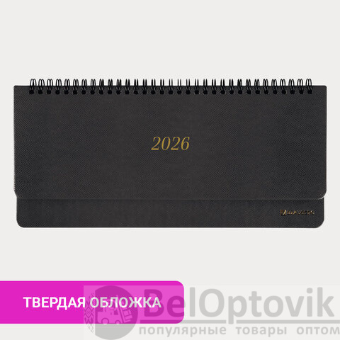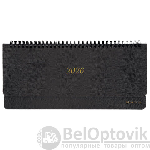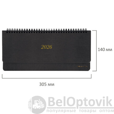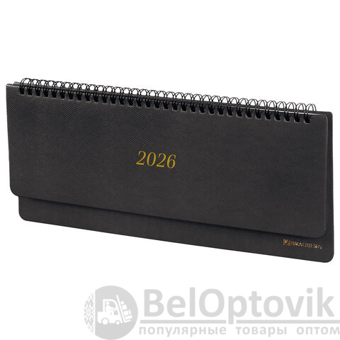 Планинг датированный 2026 305х140 мм BRAUBERG "Iguana", под кожу, черный, 117224