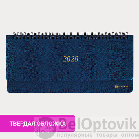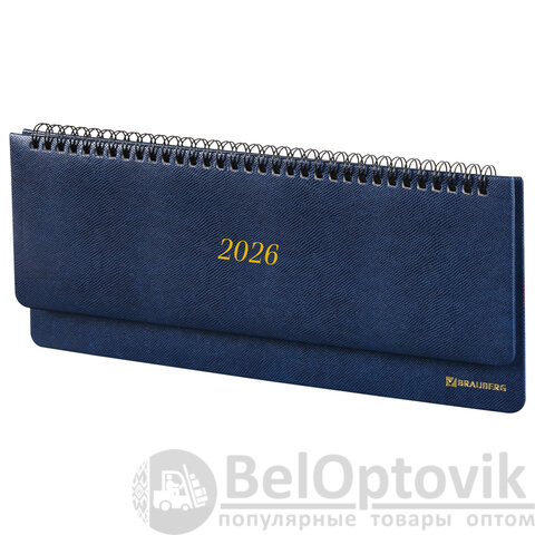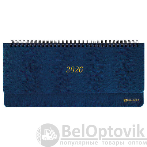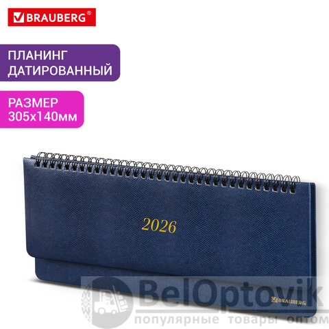 Планинг датированный 2026 305х140 мм BRAUBERG "Iguana", под кожу, синий, 117226