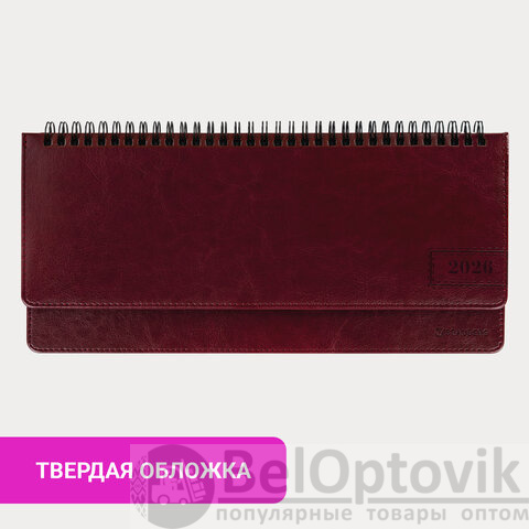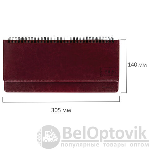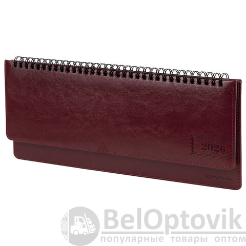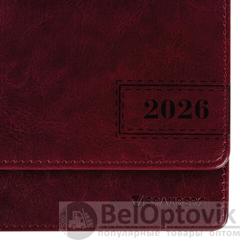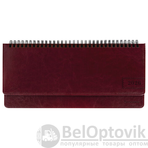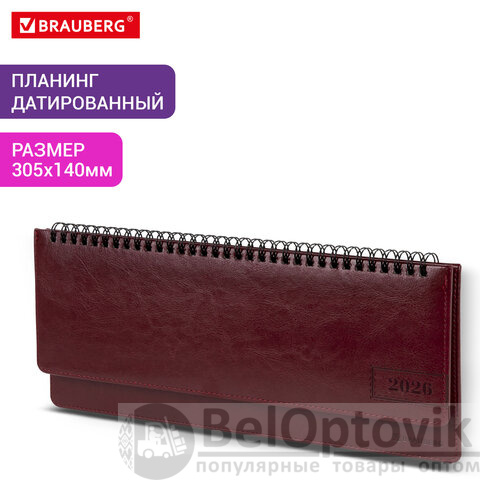 Планинг датированный 2026 305х140 мм BRAUBERG "Imperial", под кожу, бордовый, 117227