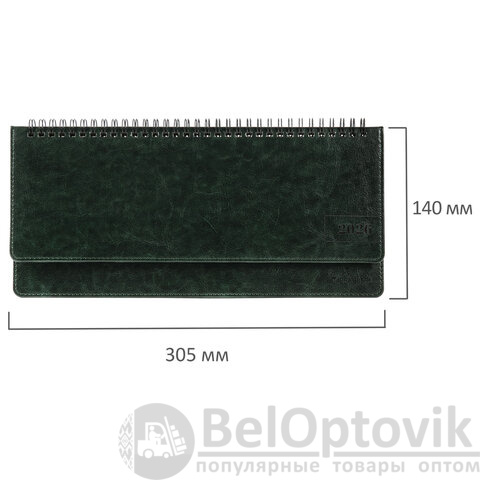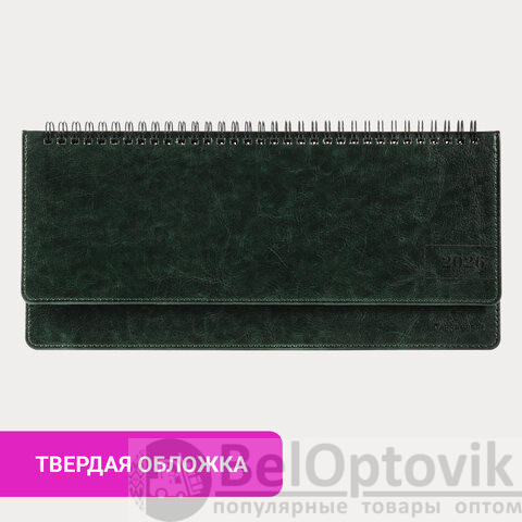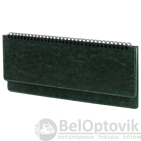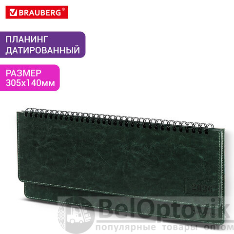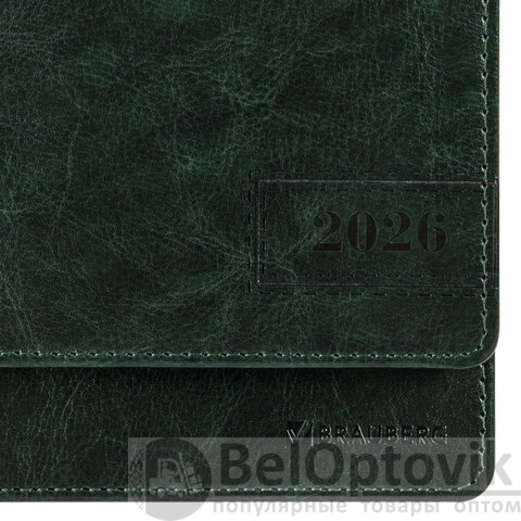 Планинг датированный 2026 305х140 мм BRAUBERG "Imperial", под кожу, зеленый, 117230