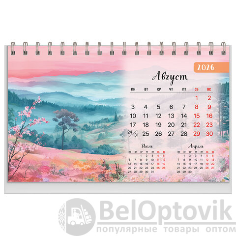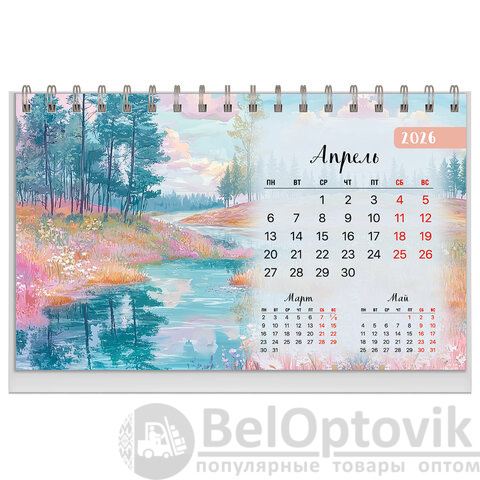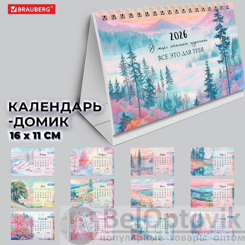 Календарь-домик настольный на гребне, 2026 г., BRAUBERG, 160х110 мм, 6 листов, "Природа", 117298