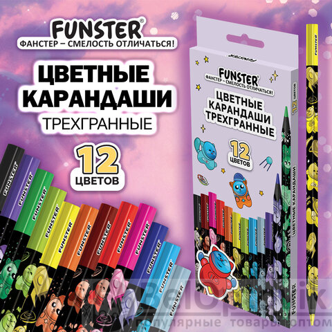 Пластиковые трехгранные цветные карандаши высокого качества FUNSTER – идеальный выбор для творческих исследователей всех возрастов, которые любят рисовать, раскрашивать и фантазировать.