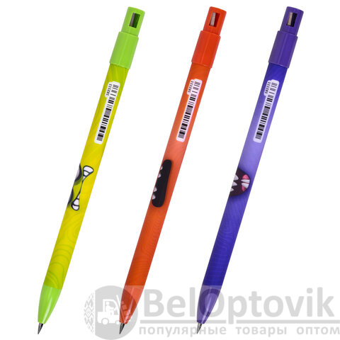 Механический карандаш снабжен грифелем HB 2 мм, заточен и готов к использованию. Карандаш подходит для рисования, черчения, а также ведения аккуратных записей. Встроенная точилка обеспечивает острую заточку. Круглый корпус с покрытием soft-touch добавляет комфорта при письме. Дизайн с забавными монстриками привлечет внимание к ярким деталям и поднимет настроение в процессе его использования.