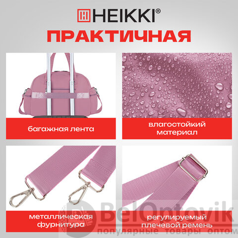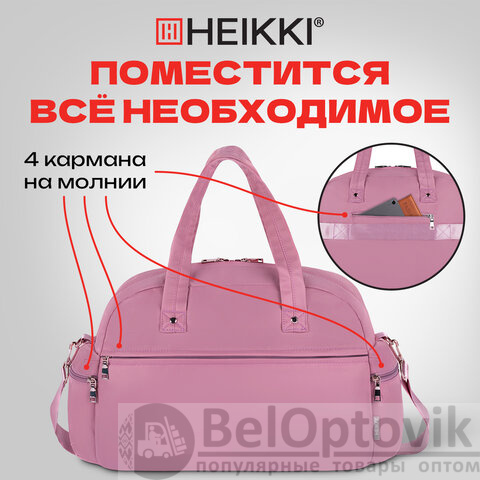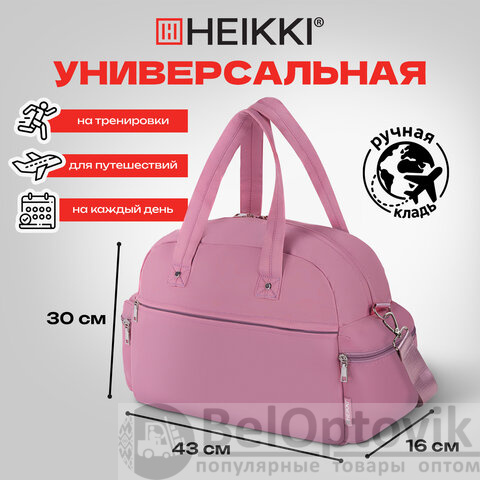 Сумка дорожная HEIKKI HANDY (ХЕЙКИ), карман на молнии, багажная лента, пыльная роза, 43х16х30 см, 273872