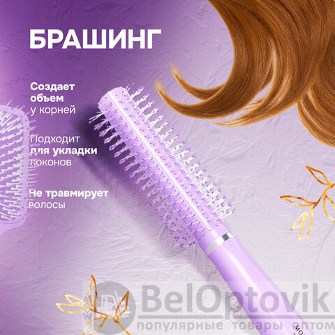 Брашинг быстро и равномерно распределяет тепло при сушке феном, предотвращая перегрев и сохраняя естественный блеск волос. Нейлоновая щетина создает объем у корней и стимулирует рост. Удобная ручка из ABS-пластика обеспечивает надежный контроль.