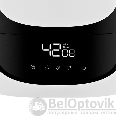 Сенсорное управление, стильный дисплей. Вы можете задавать желаемый уровень влажности от 40 до 90% с шагом 5%, а также время работы увлажнителя – от 1 до 12 ч с шагом 1 ч. На дисплее отображаются текущая влажность и таймер. Вы можете выключить дисплей, воспользовавшись кнопкой “Ночной режим”.