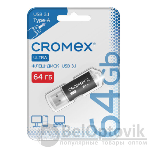 Стильный и емкий флеш-диск CROMEX Ultra USB 3.1 отлично подходит для резервного копирования, переноса информации и обмена файлами. Флеш-диск позволяет держать фотографии, видеоролики, музыку и личные данные всегда под рукой.