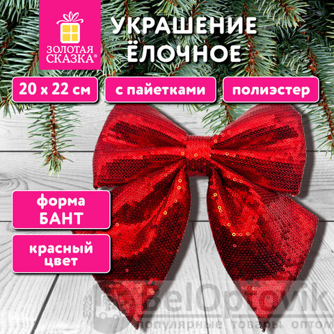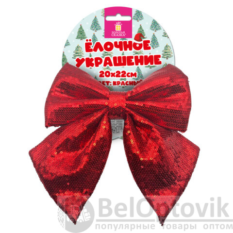 Украшение ёлочное 20х22см,"Бант с пайетками", полиэстер, красный, ЗОЛОТАЯ СКАЗКА, 592480