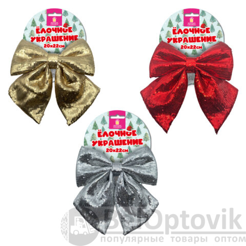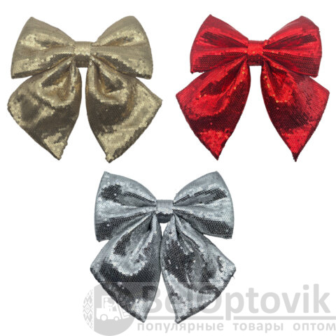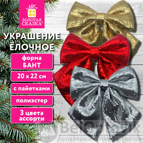 Украшение ёлочное (1шт) 20х22см, "Бант с пайетками", полиэстер, ассорти 3 цвета, ЗОЛОТАЯ СКАЗКА, 592482