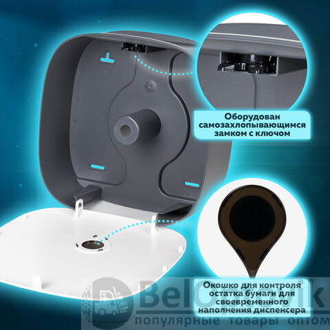 Антивандальный корпус изготовлен из ударопрочного ABS-пластика. Предназначен для подачи профессиональной туалетной бумаги в рулонах с намоткой до 200 м. Обеспечивает высокий уровень гигиены и комфортную подачу туалетной бумаги. Имеется окошко для контроля остатка расходных материалов. Сочетается с расходными материалами других производителей. Оборудован самозахлопывающимся замком с ключом. В комплект входят крепежные материалы для установки.