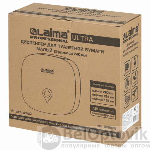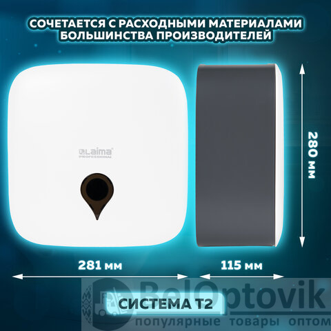 Диспенсер для туалетной бумаги ULTRA LAIMA PROFESSIONAL (Система T2), малый, белый, ABS-пластик, 606835
