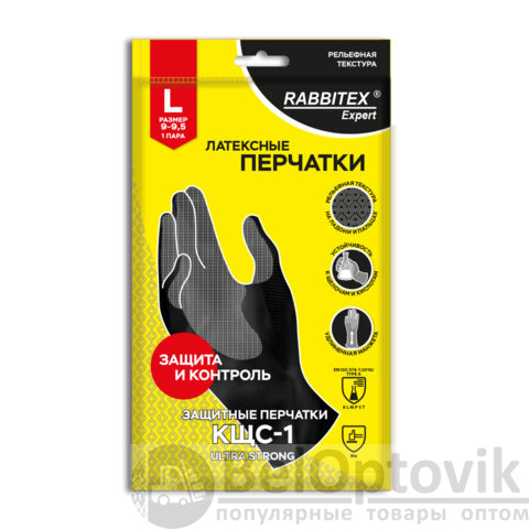 Перчатки латексные КЩС-1 ULTRA STRONG химически устойчивые двухслойные чёрные, размер 9-9,5, L (большой), RABBITEX (РАББИТЕКС) EXPERT 609272