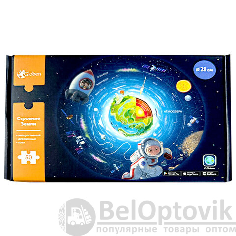 Интерактивная деревянная карта-пазл GLOBEN "Строение Земли", 28 см, 50 элементов, PAG5205