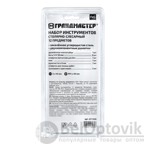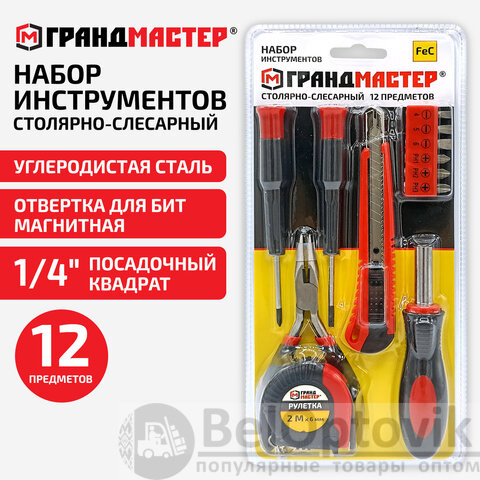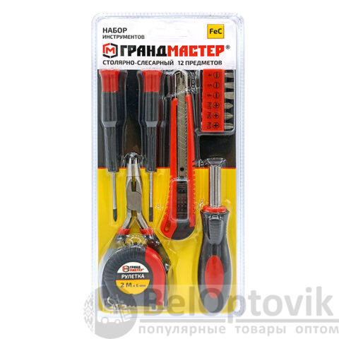 Набор инструментов столярно-слесарный, 12 предметов, блистер, ГРАНДМАСТЕР, 671330