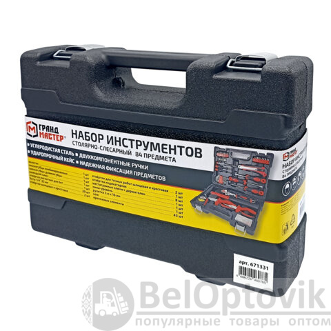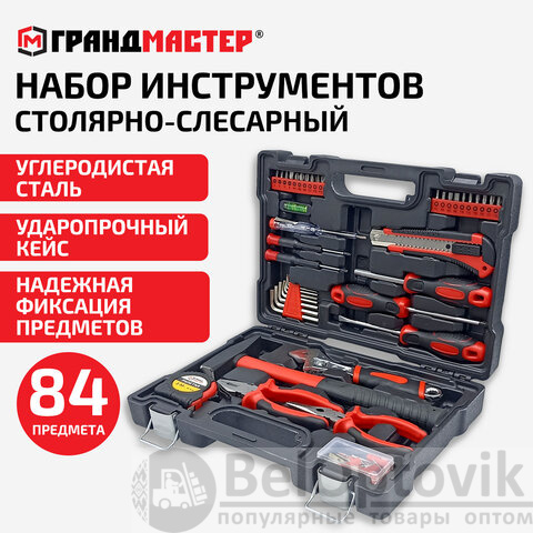 Набор инструментов столярно-слесарный, 84 предмета, пластиковый кейс, ГРАНДМАСТЕР, 671331