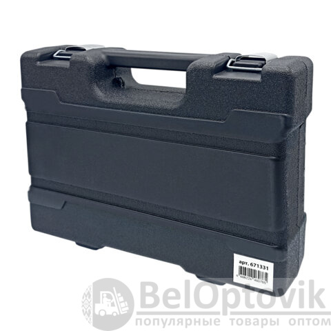 Весь инструмент располагается в ударопрочном кейсе с металлическими застежками и ручкой для удобства переноски. Для каждого предмета в наборе предусмотрено специальное углубление для удобства хранения.
