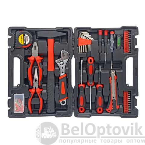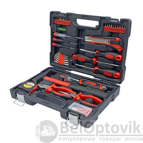 Инструменты изготовлены из закалённой углеродистой стали. Рукоятки выполнены из нескользящего ПВХ для максимального комфорта и безопасности во время использования. В состав набора входят инструменты, необходимые в столярно-слесарном деле, для ремонта автомобиля и любой колесной техники, бытовой техники, а также мебели.