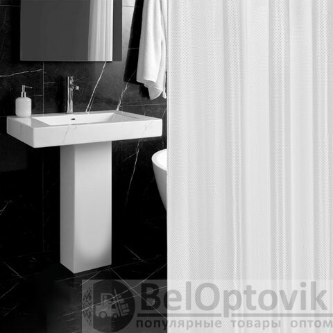 Шторка для ванной ПОЛИЭСТЕР, 180х200 см, кольца в комплекте, БЕЛЫЙ БРИЛЛИАНТ, PRIMILA (ПРИМИЛА), 700093