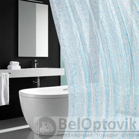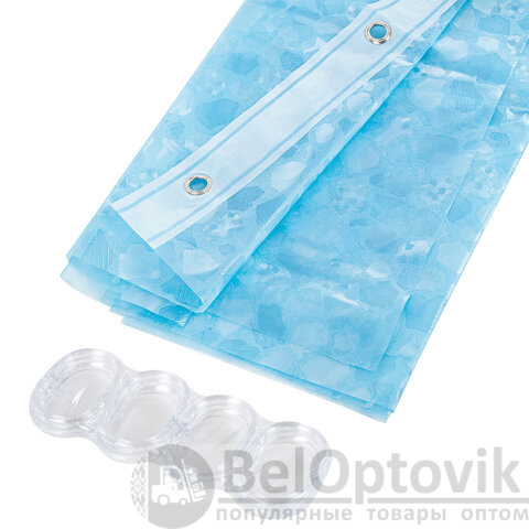 Шторка для ванной EVA, 180х200 см, кольца в комплекте, СИНЯЯ ЛЕДЯНАЯ СВЕЖЕСТЬ, PRIMILA (ПРИМИЛА), 700100