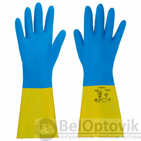 Благодаря повышенной плотности перчатки защищают от более высоких концентраций химических веществ. Неопреновый слой увеличивает механическую прочность, а также сохраняет гибкость и эластичность в холодных условиях. Внутреннее хлопковое напыление дарит комфорт во время работы. Рельефная текстура на ладони и пальцах обеспечивает надёжный захват влажных и промасленных предметов. Удлинённая манжета защищает руки и рукава одежды от загрязнений.