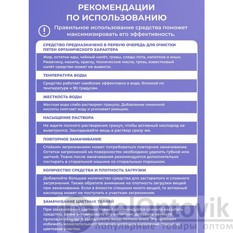 Рекомендации по использованию: для активации экологического стирального порошка необходимо разбавить биоразлагаемый пятновыводитель BRANDFREE кипятком (50 °C и выше), после чего начнется химический процесс с выделением кислорода, способствующий расщеплению жирных пятен, устранению желтизны и любых других загрязнений.