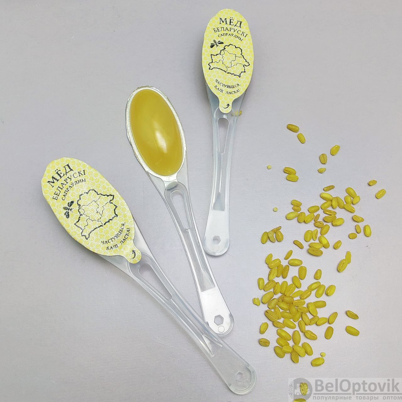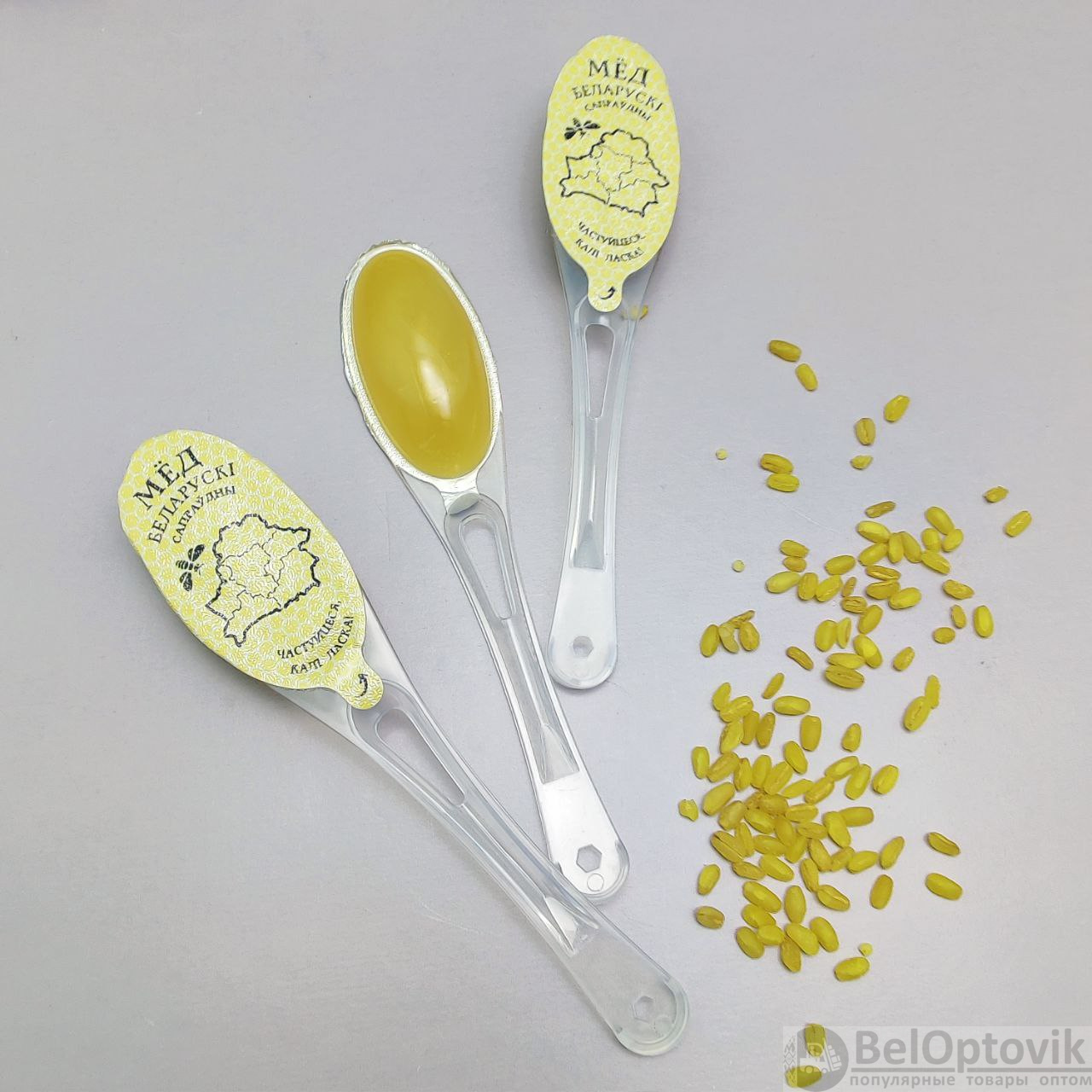 Купить Мед натуральный сувенирный в ложке 9 грамм, разнотравье (1 ложка) на нашем сайте можно ОПТОМ от 500 шт.