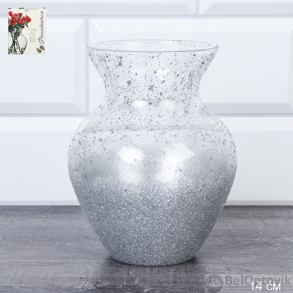 Ваза для цветов Иней серебро / 43206 /уп 6/прозр.худ