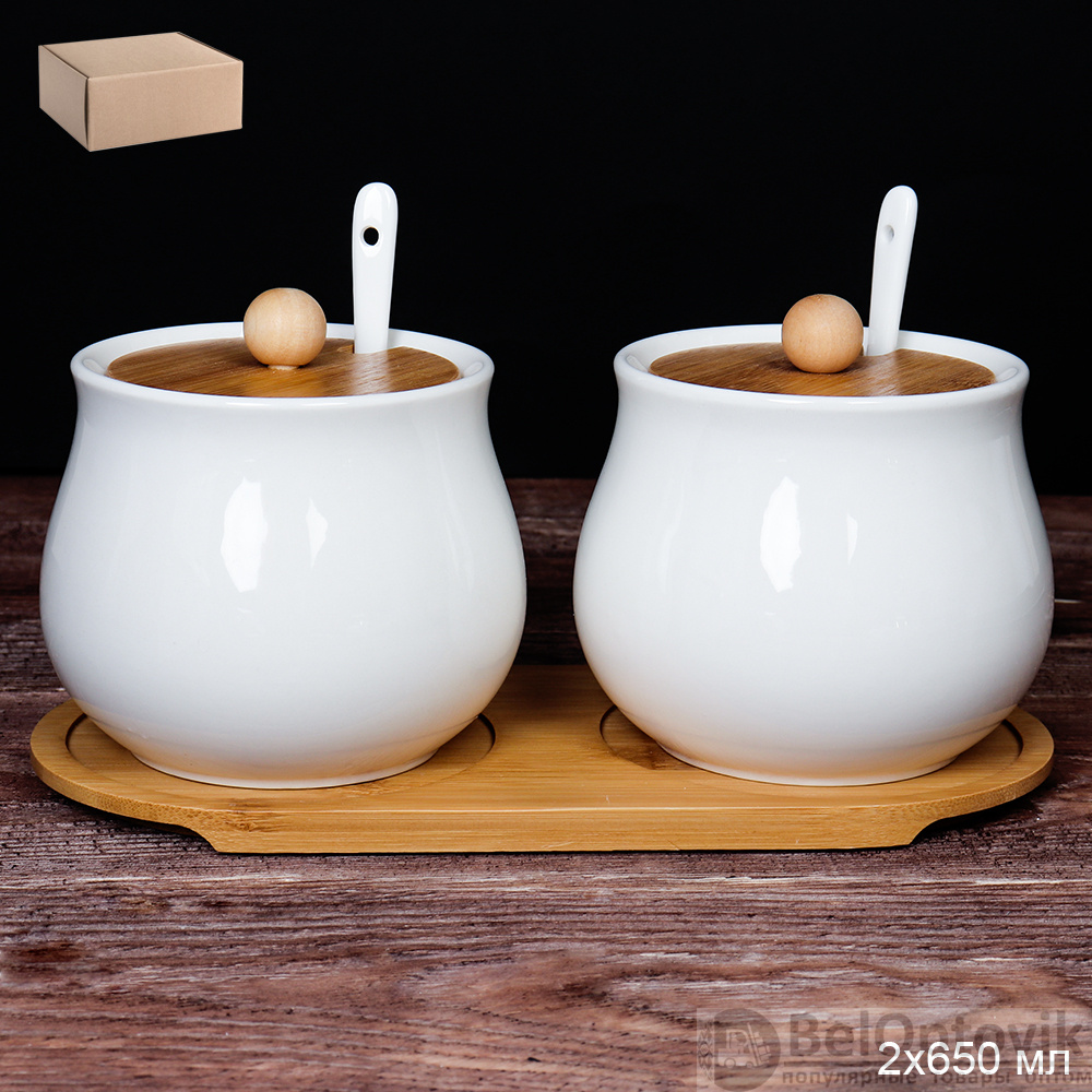 Набор для специй 2 предмета с ложкой 650 мл / CF116 /уп 24/ на подставке
