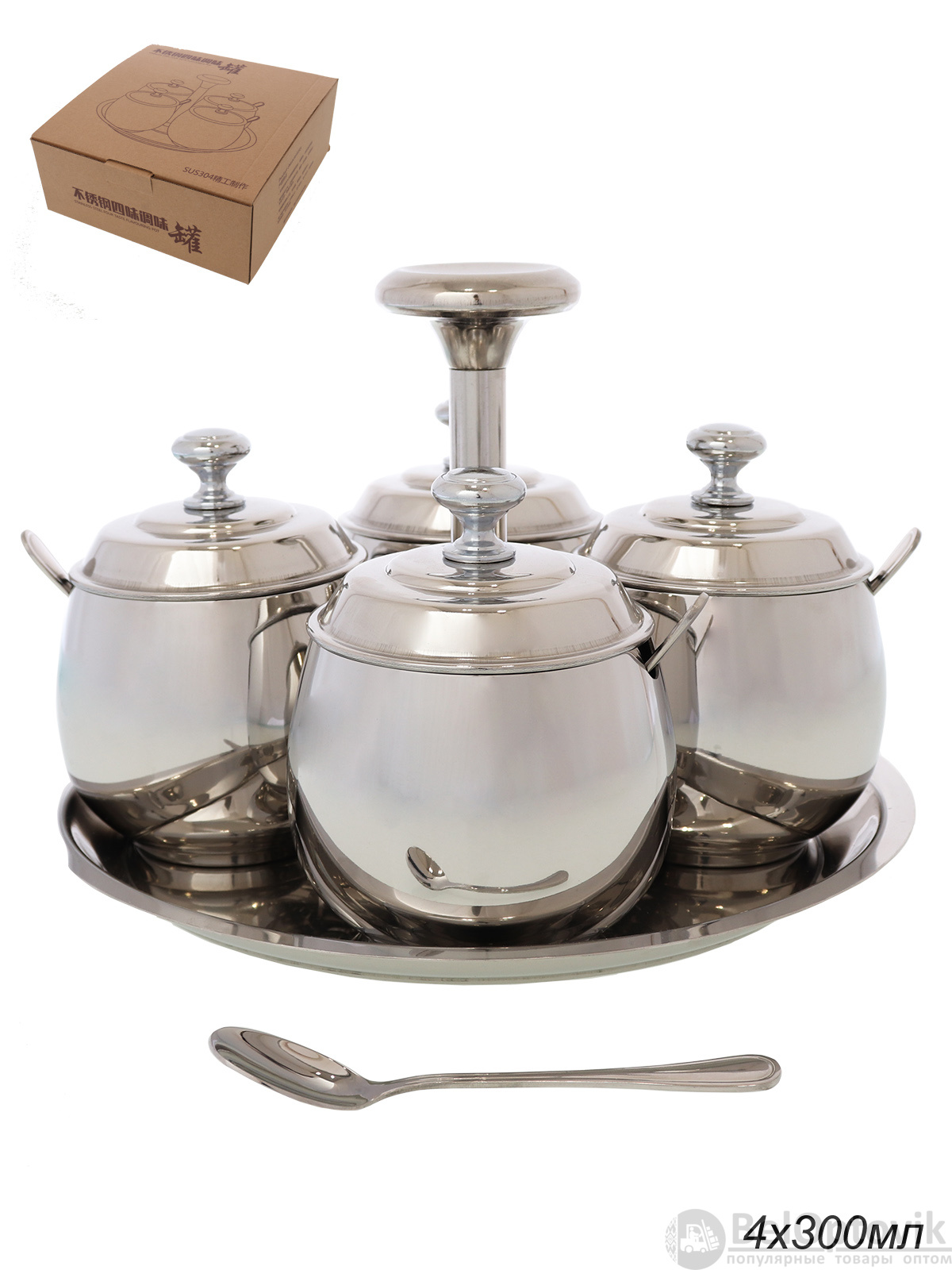 Набор для специй 300 мл с ложками на подставке 4 шт АКЦИЯ / GT-19026-220 /уп 12/