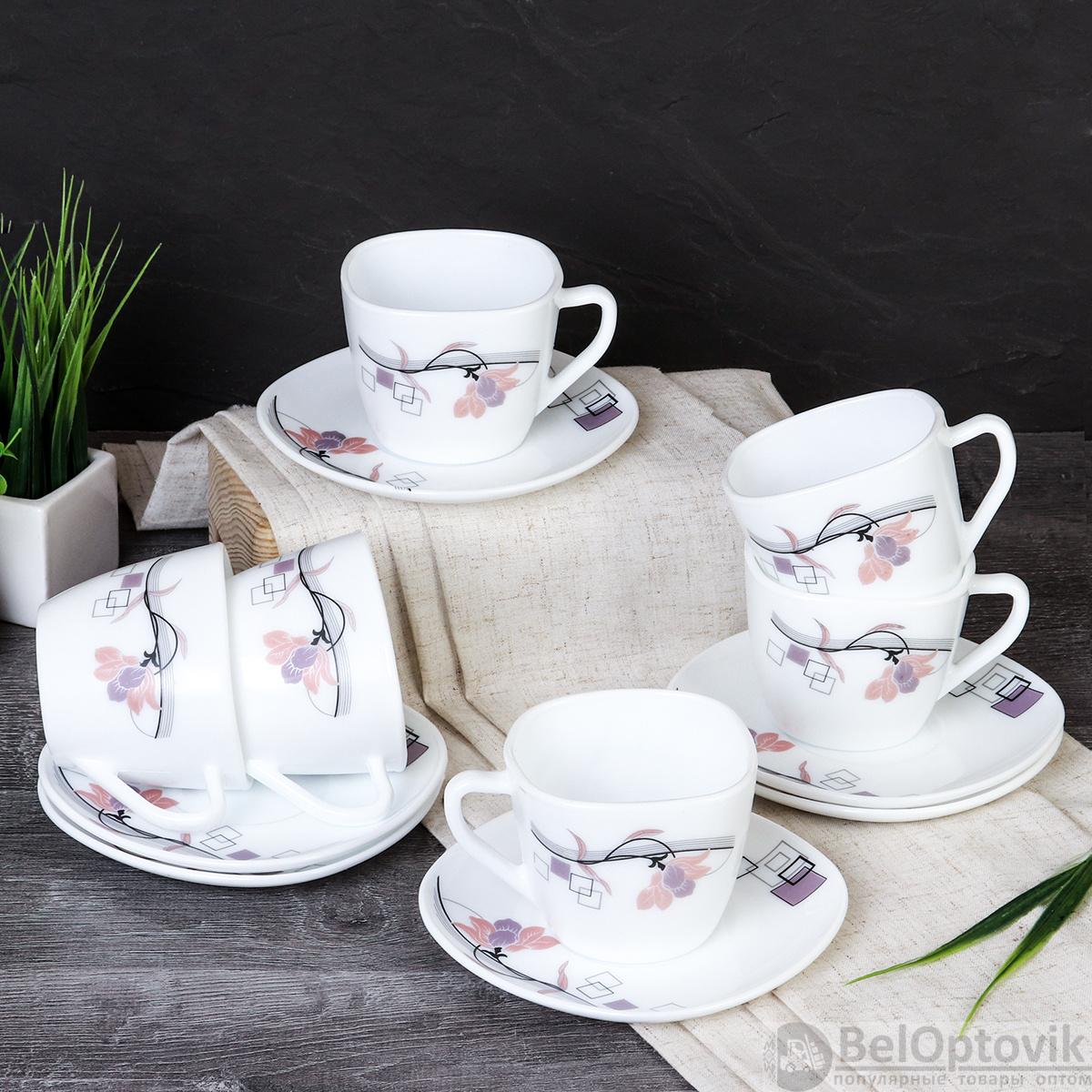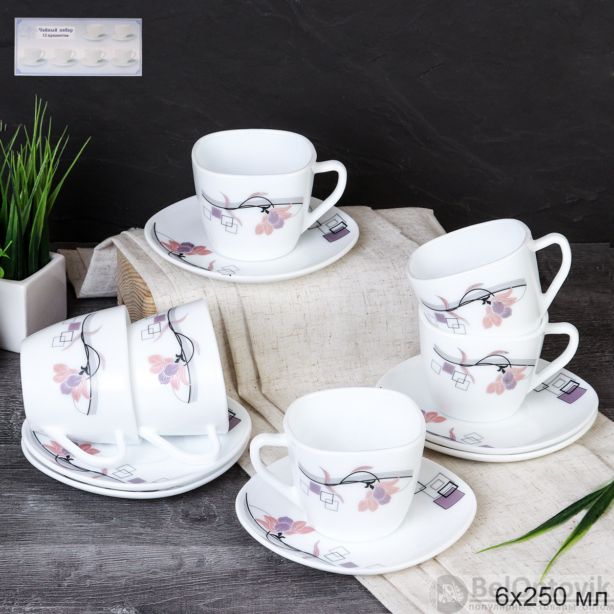 Чайный набор 12 предметов 250 мл квадратная / FXB220/12 (6834) /уп 8/ Абстракция геометрия