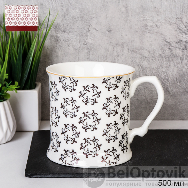 Кружка объёмом 500 мл с классическим орнаментом подходит для повседневного использования и корпоративных презентов. Преимущества: