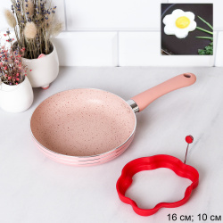 Набор Сковорода 16 см + форма для яичницы Цветок/ б/кр / RSD-47 / F-147 /уп/ Розовый