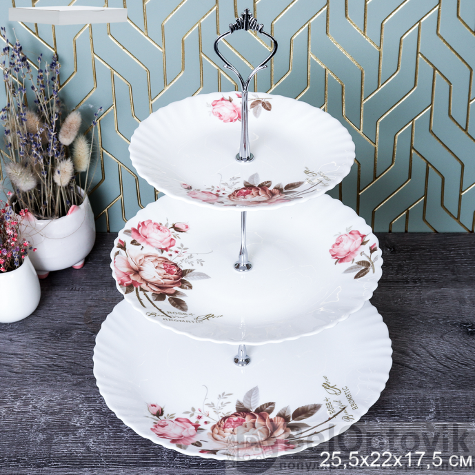 Стильное решение для сервировки фруктов и десертов. Устойчивая конструкция и изысканный дизайн с рисунком «Чайная роза».