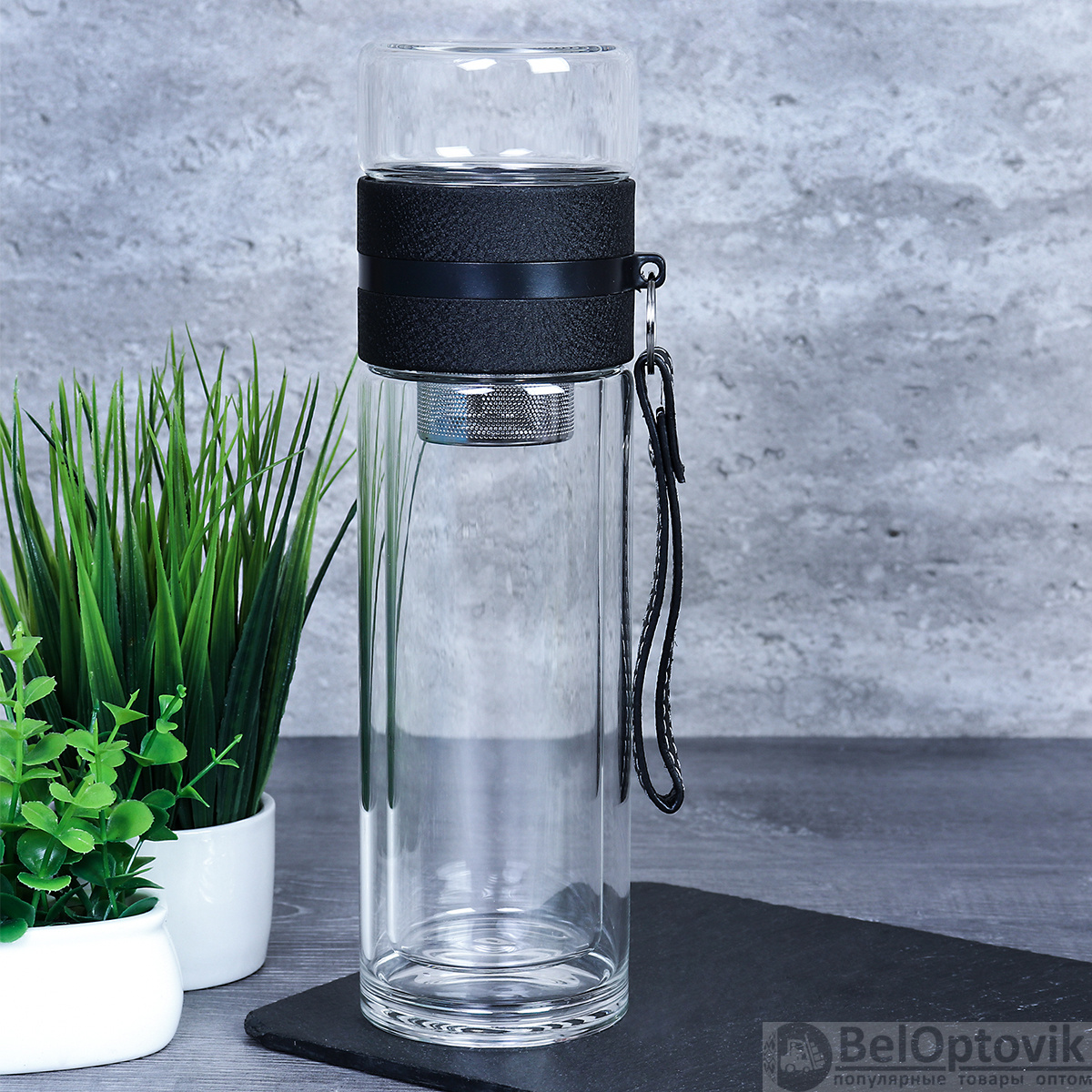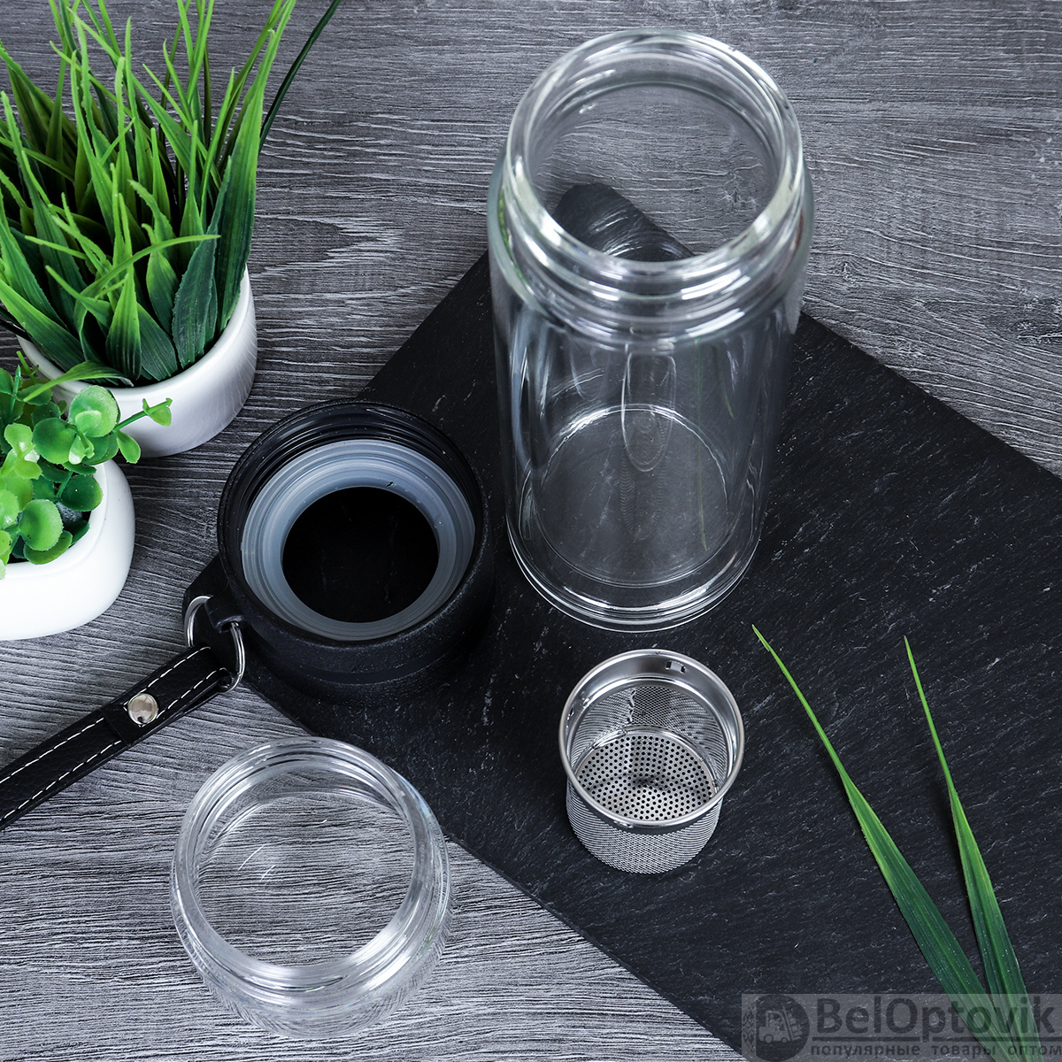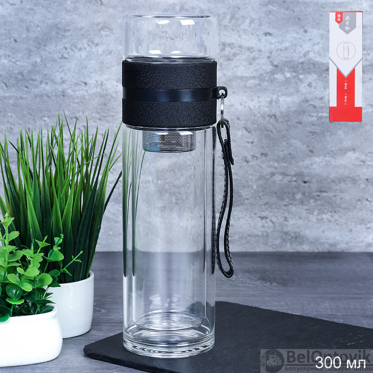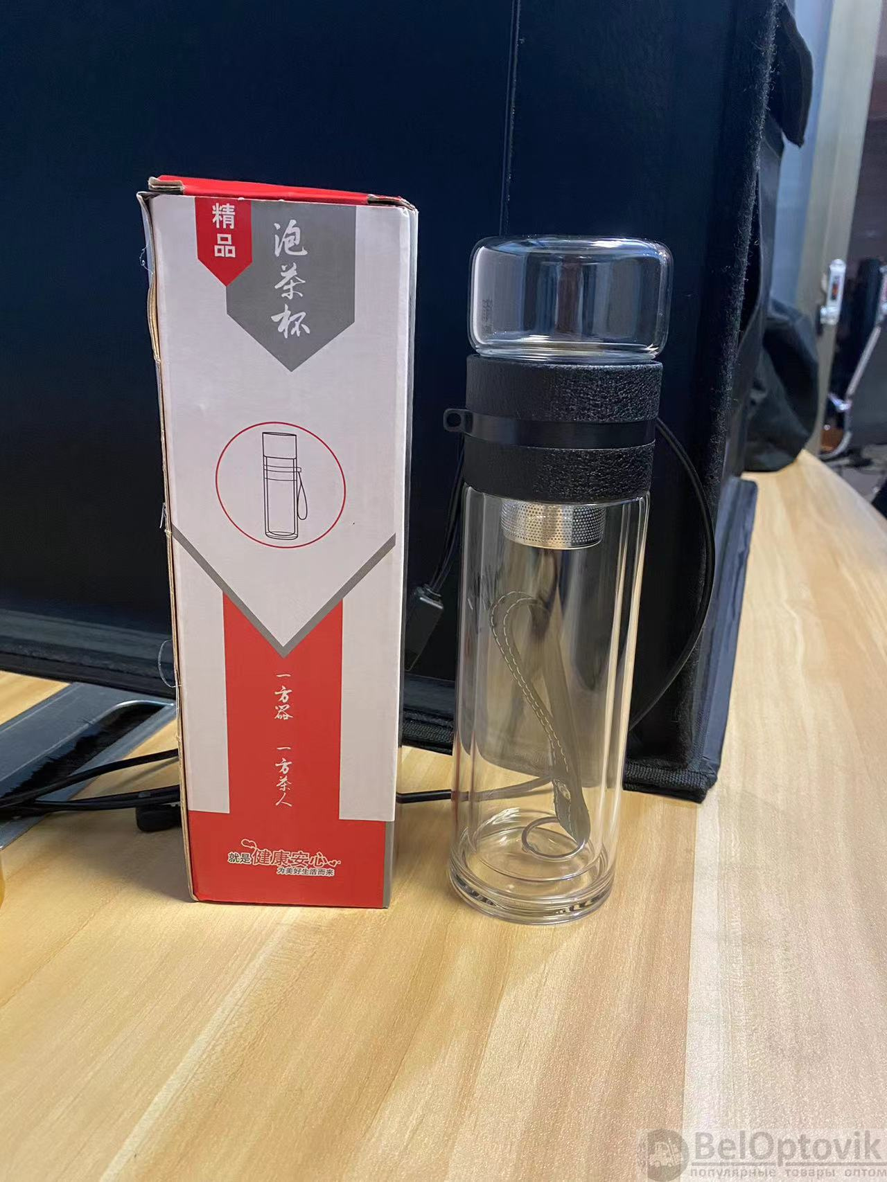 Термос для заваривания чая с ситом 350 мл двойное стекло / YE-123 / уп 60/
