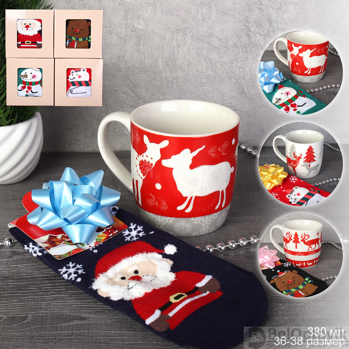 Подарочный набор Кружка новогодняя 380 мл+ носки / H012 / в подарочной упаковке /АКЦИЯ