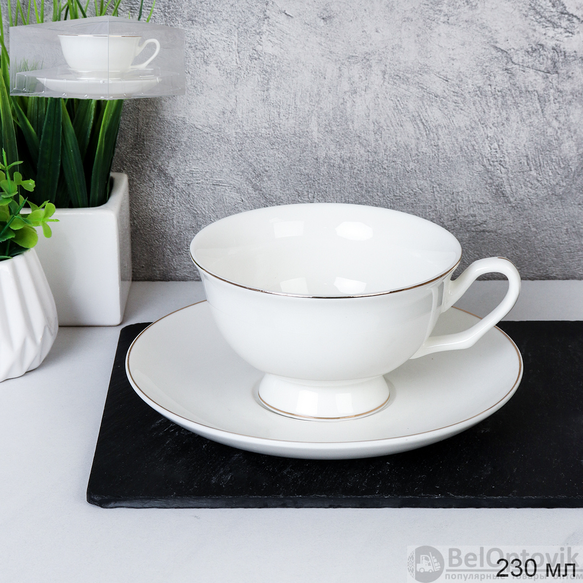 Чайная пара 2 предмета 230 мл ПАРА Гифт прозрач / GC57-230 WHITE /уп 48/ костяной фарфор