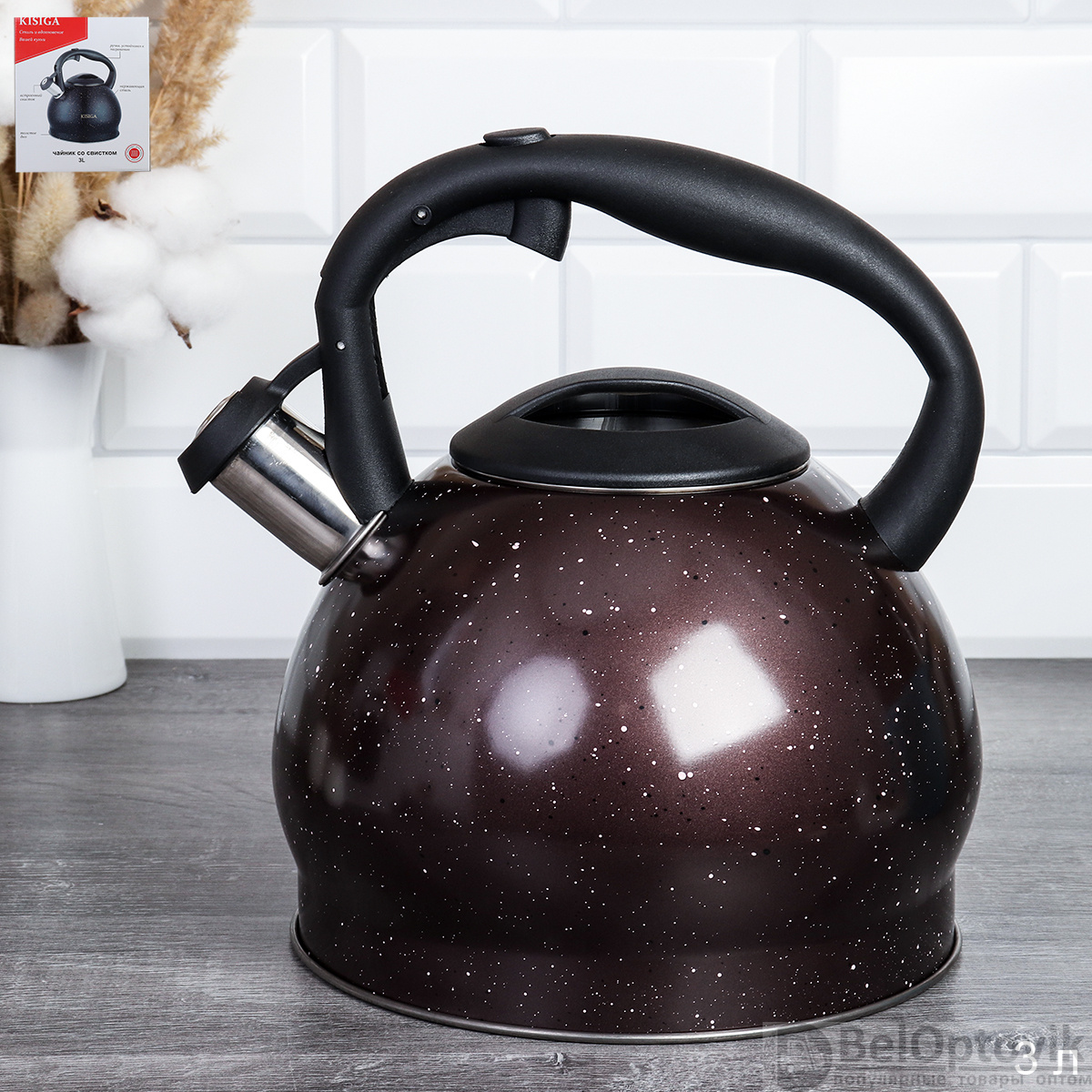 Чайник 3,0 л,ручка Бакелит/ KISIGA / KBR-435 /уп 12/ 0,76/индукция / трехслойное дно