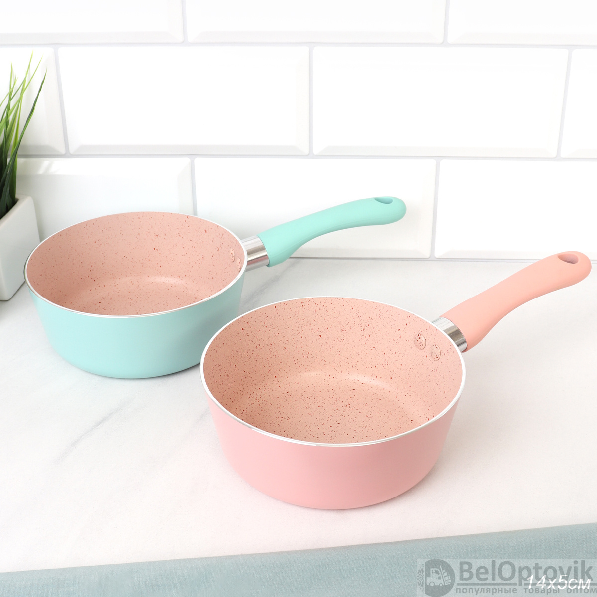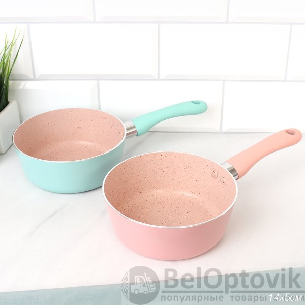 Ковш 14 см с антипригарным покрытием ручка Soft Touch/ h=5 см/ б/кр / COG-14 /уп 100/ 0,2