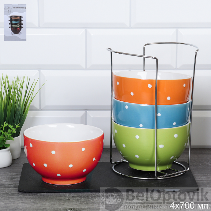Тарелка глубокая суповая 4 штуки на подставке Горох Акция / WS-106 /уп 6/