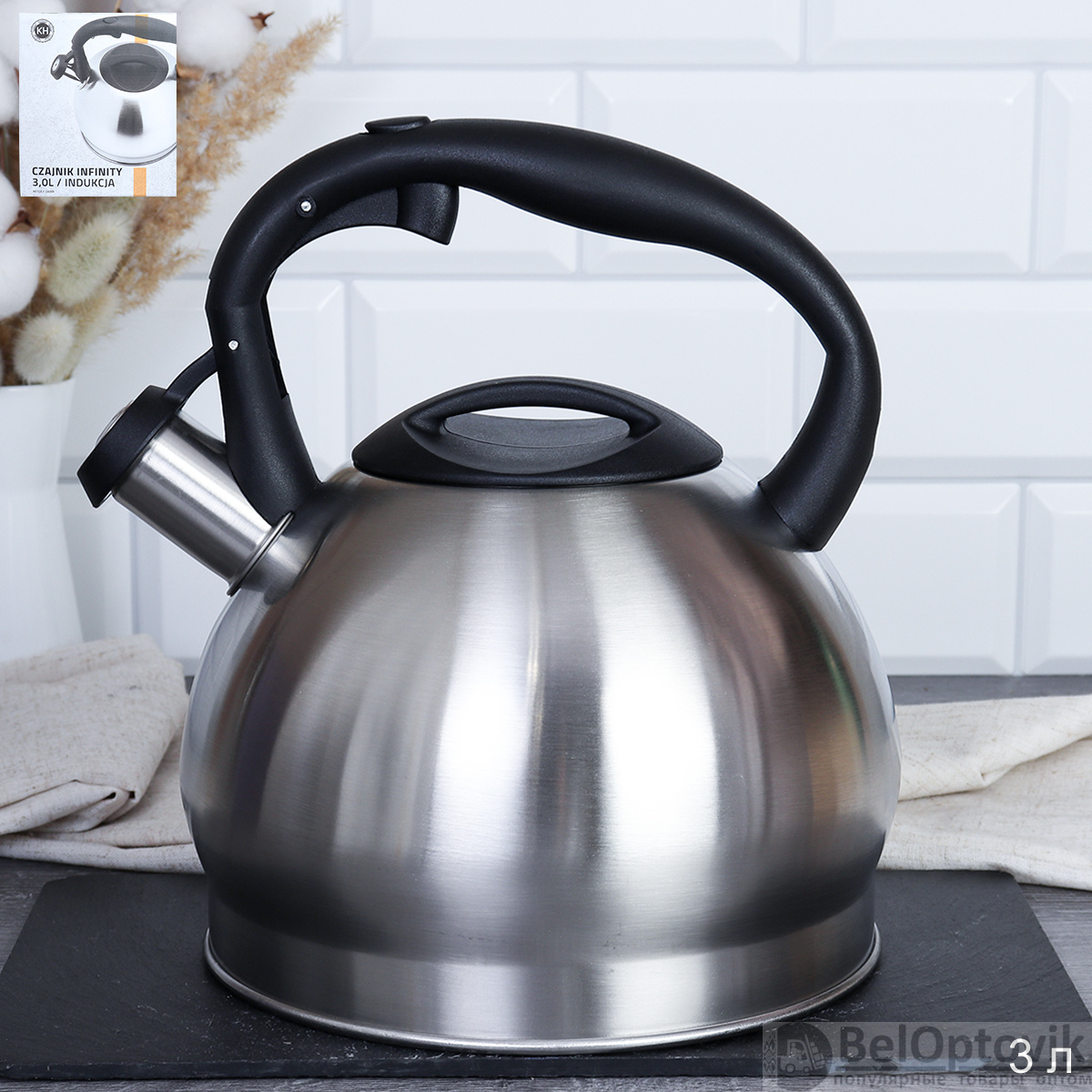 Чайник 3,0 л / JX-096 /уп 12/ цвет серебро /0,66/ индукция