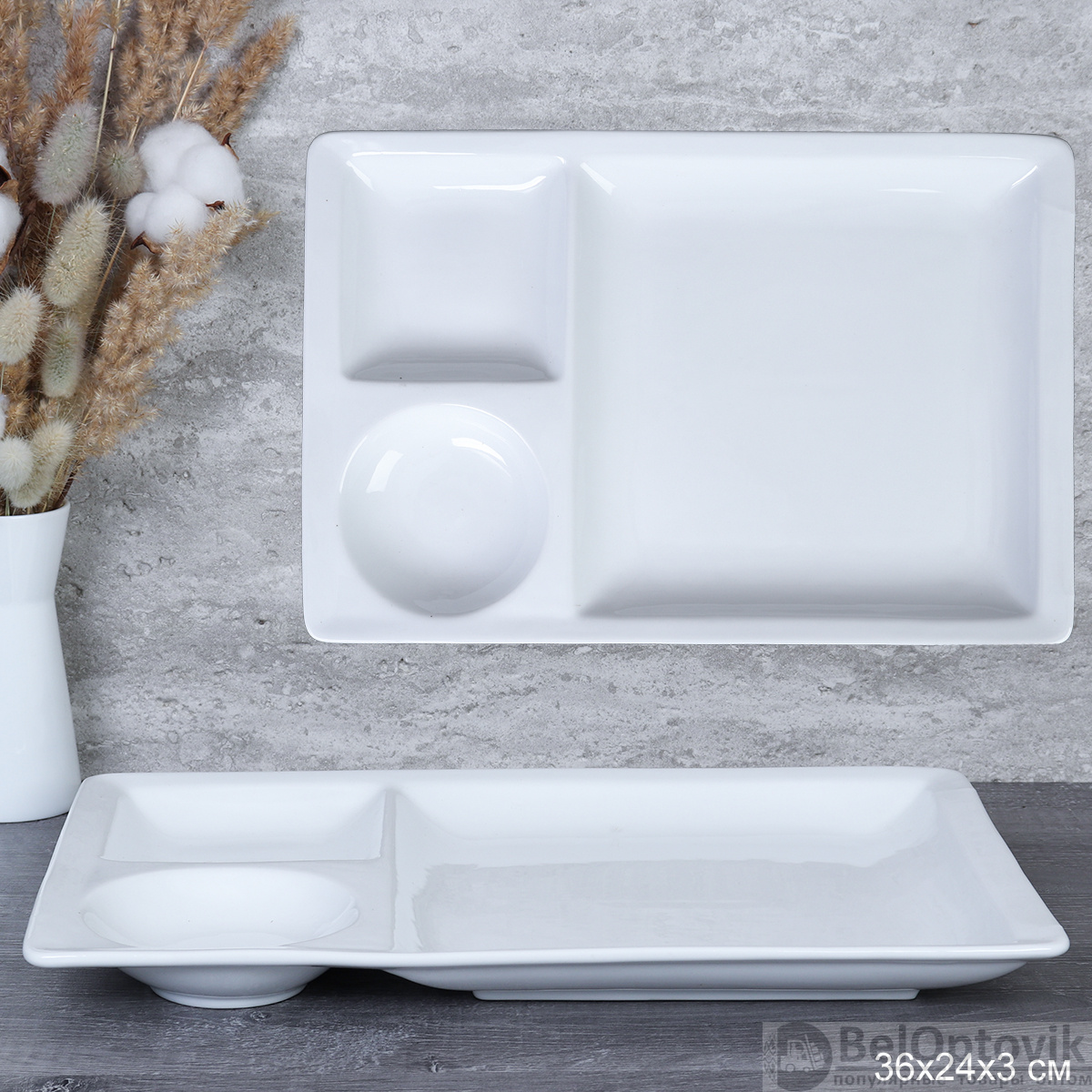 Менажница 3 секции 36х24 см / ERF-1452 /уп 14/ с выемкой для соуса