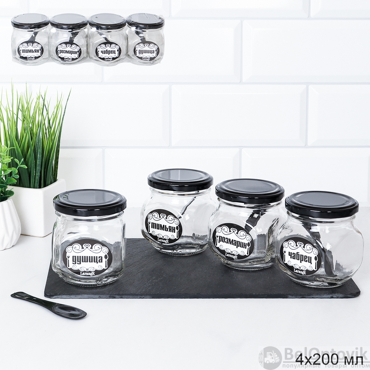 Уникальное предложение по акции! Набор из 4 банок объемом 200 мл идеально подходит для хранения специй, косметики или мелких предметов. Преимущества: