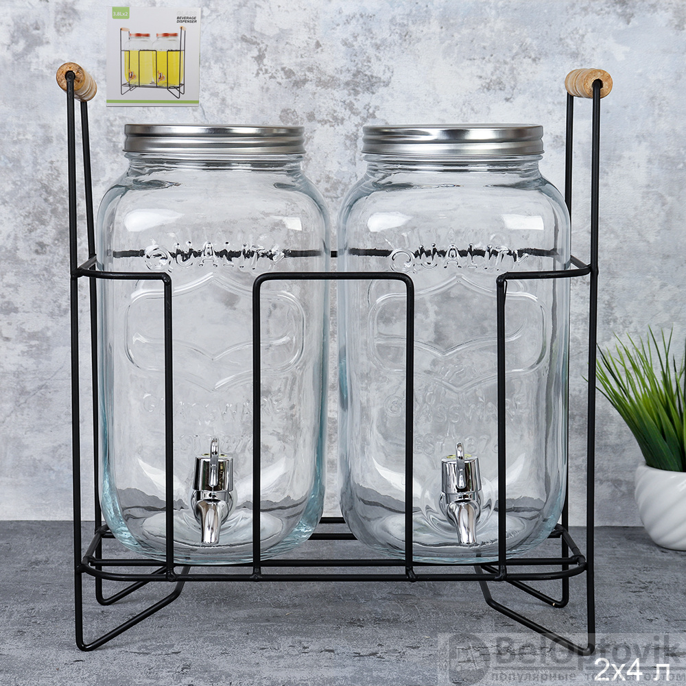 Банка с краном 2 штуки 4 л на подставке / 1898-3800 /уп 4/ Лимонадник
