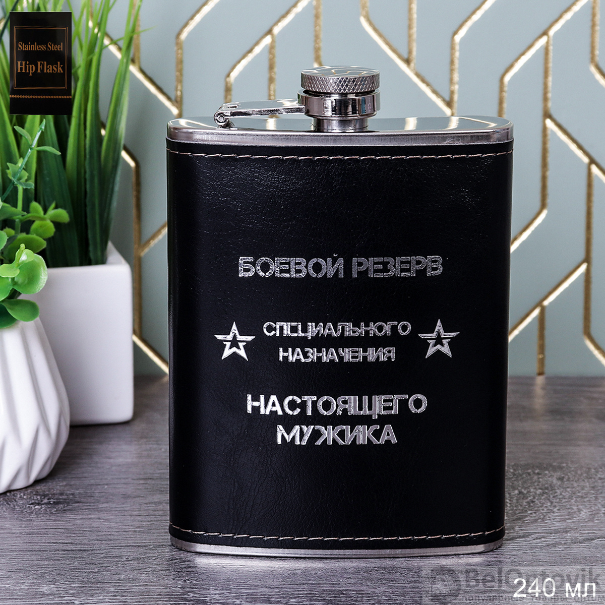 Тематическая фляжка «Боевой резерв» объемом 240 мл подойдет для любителей активного отдыха. Модель FL-236 сочетает функциональность и стильный дизайн.