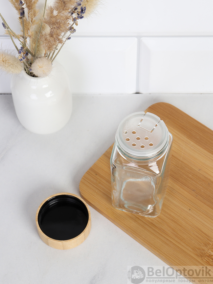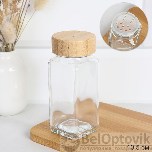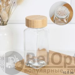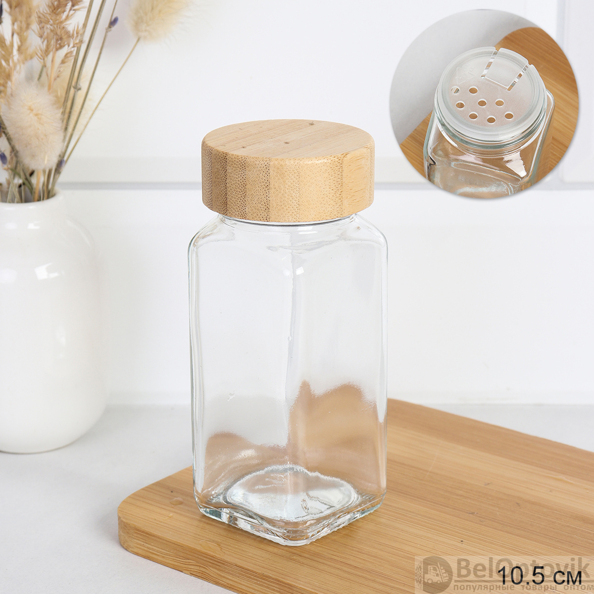 Солонка 10,5 см с ситечком 120 мл / KB105 /уп 144/ крышка бамбук