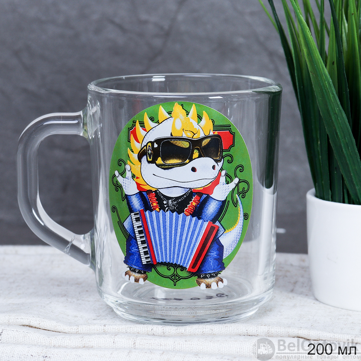 Кружка с изображением дракончика объёмом 200 мл отличается: