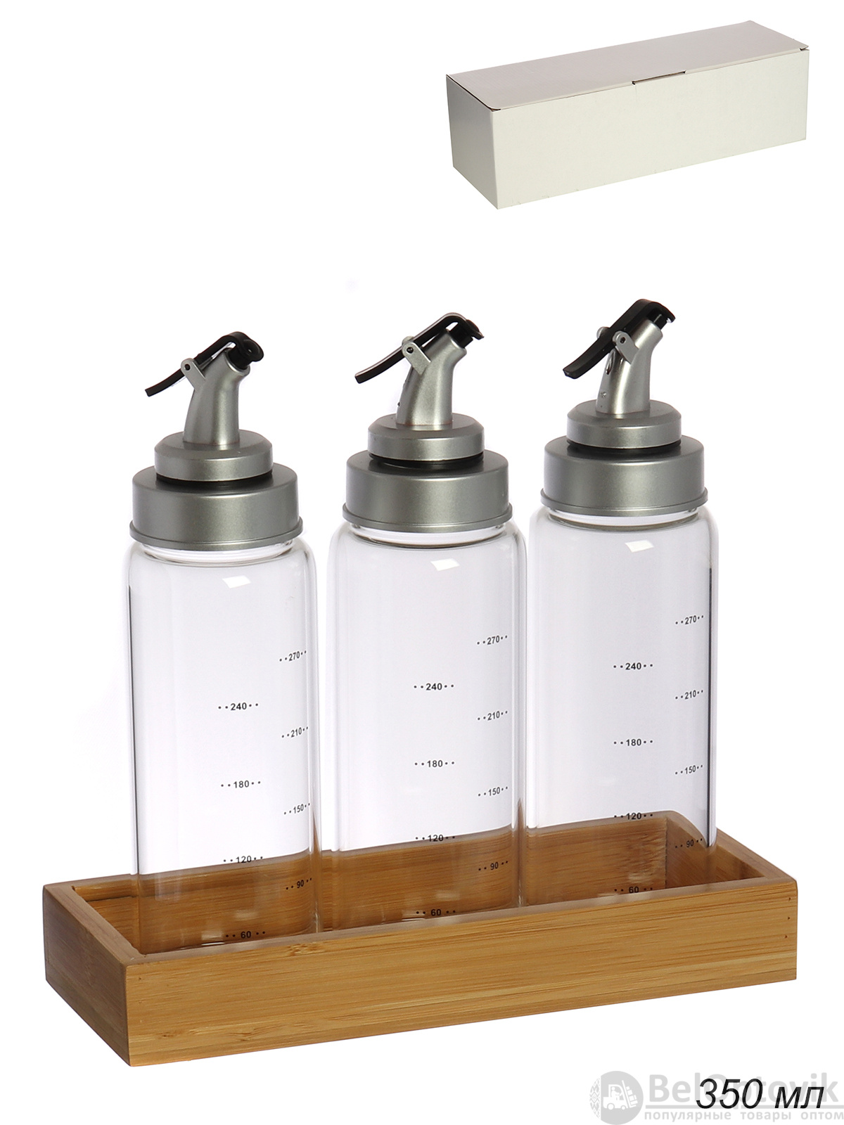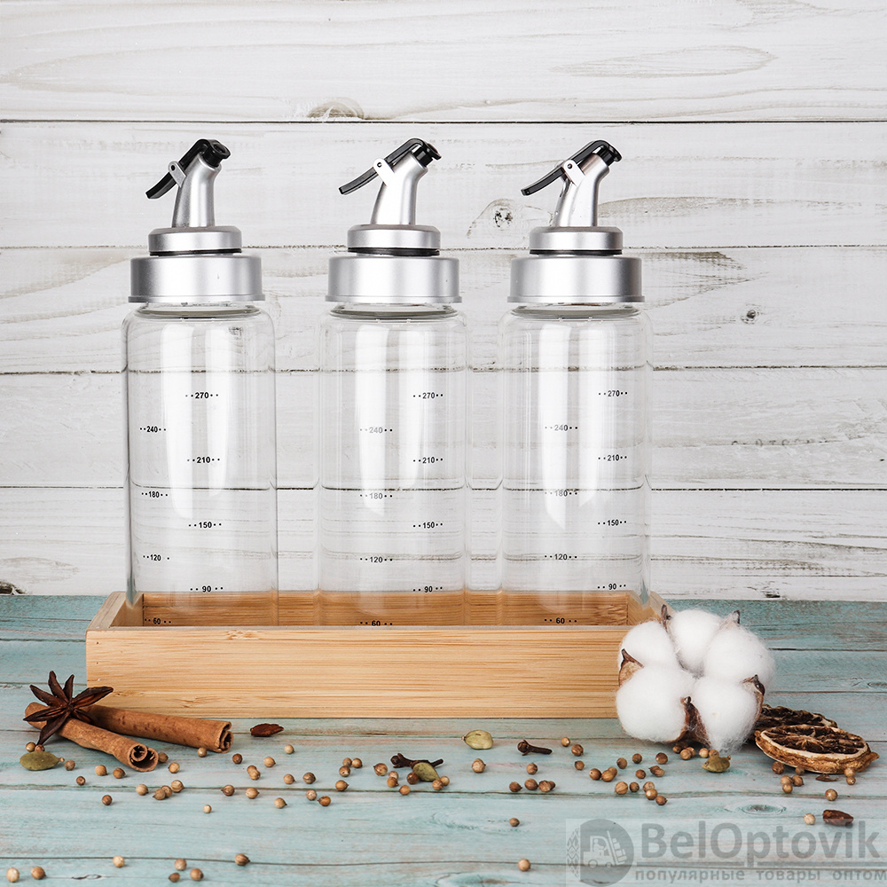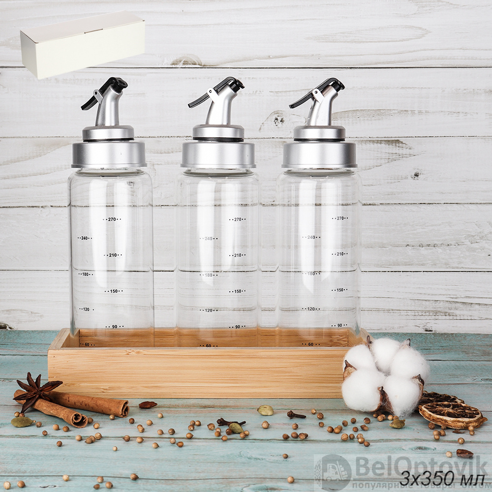 Бутылка с дозатором для масла,уксуса набор 3 предмета 350 мл / CF005 /уп 24/ на подставке