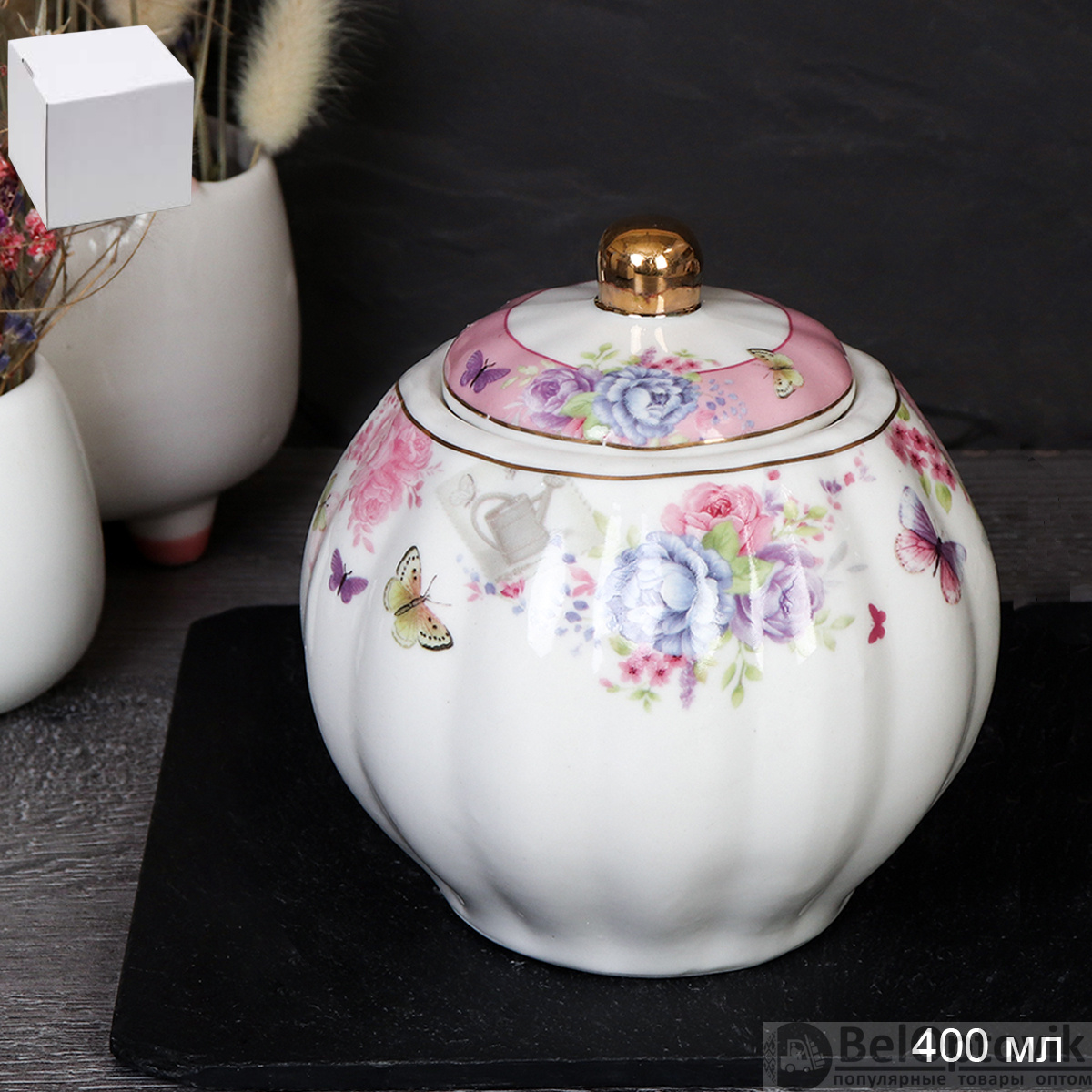 Сахарница 400 мл АКЦИЯ / FY22005 /уп 36/ Пионы