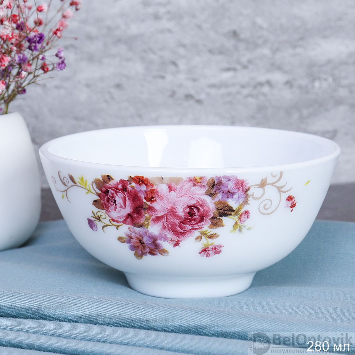 Пиала 280 мл 110 мм / W-45/6 (7065) /уп 96/ серия Розовая композиция